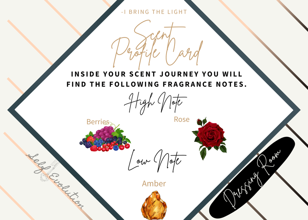 Dressing Room unfolds with the alluring femininity of Bombshell, a fragrance that’s equal parts bold and elegant. Bright top notes dance in the air, followed by soft florals and warm undertones that linger like silk against the skin. It’s glamorous, mysterious, and magnetic—just like the woman preparing for her next chapter.