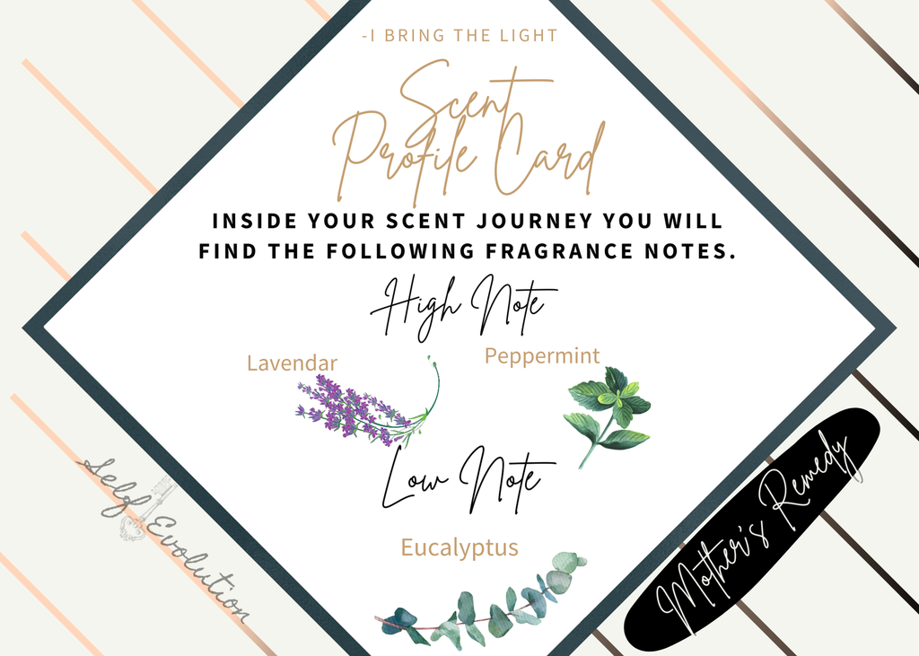Mother’s Remedy opens with the calming embrace of lavender, instantly easing tension and quieting the mind. As the fragrance deepens, eucalyptus clears the air with its cool freshness, while peppermint adds an invigorating lift that awakens the senses. Together, they create a scent that soothes body, mind, and spirit—just like mom’s remedies always did.