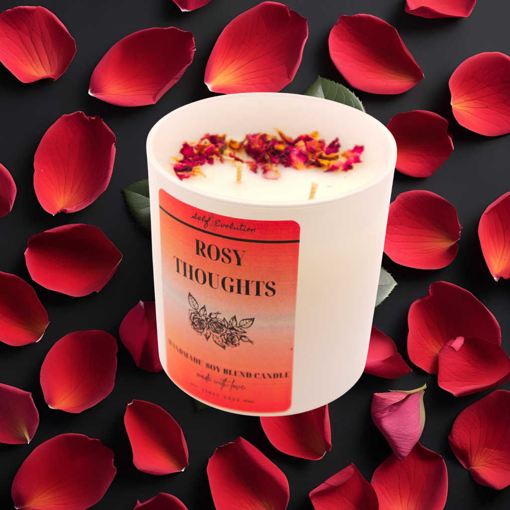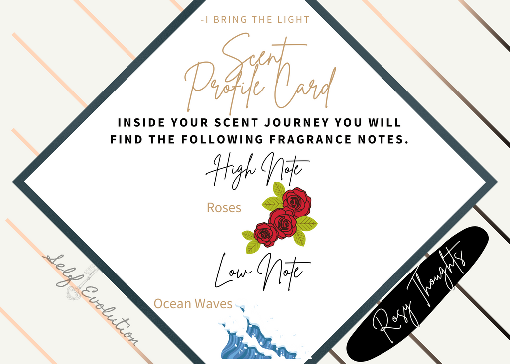 This scent profile represents the essence of Self Evolution One: the quiet thoughts that bloom when your mind is clear and your heart is open. Lighting Rosy Thoughts is like pausing to breathe, reflect, and honor the beauty within and around you. It’s both grounding and uplifting—a reminder that growth happens when love and clarity meet.